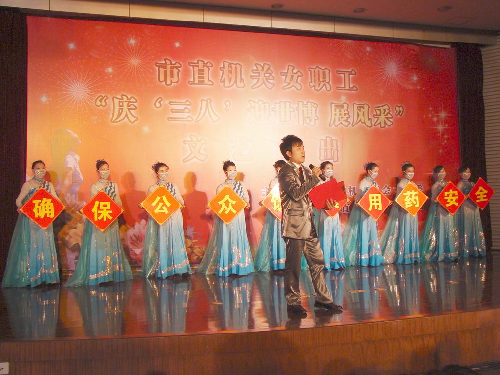 3月3日下午,市食品药品检验所代表市局参加了由市直机关工会女工委和市直机关妇委会联合举办的“庆三八、迎世博、展风采”文艺汇演。经过前期的精心准备和紧张排练,市食品药品检验所以“确保公众饮食用药安全”为主题,并结合食药监系统工作性质的舞蹈《同一首歌》精彩亮相,获得全场好评。