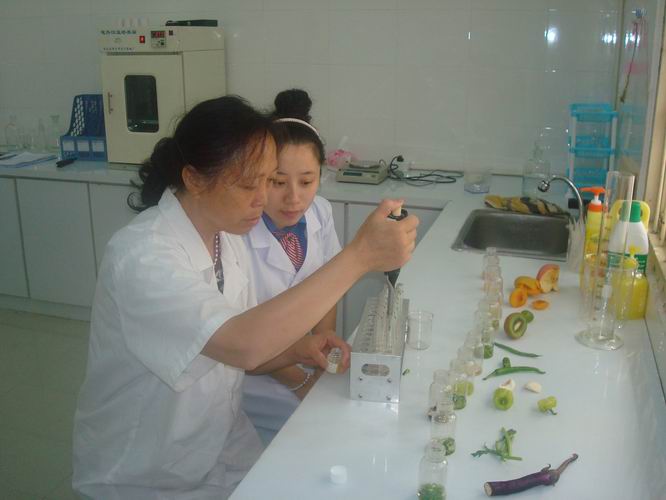 实验室现场,我院技术人员对农残快速检测原理、取样规则、步骤操作、结果分析、疑难问题等一一作出详细解答,并就出现的问题给出解决办法。与该企业实验室人员一同现场抽取20批蔬菜、瓜果样品,进行了农药残留抽样检测。30分钟后,农残快速测定仪检测结果显示,当日抽取的样品各项指标均在正常范围内,未发现农药残留超标情况。当然若抽取的样品多次检测均呈阳性表明该批产品农药残留可能超标,需把样品带回我院实验室作进一步定量检测。