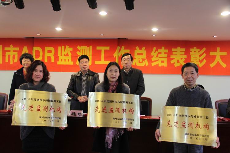 会议由湖州市卫生局副局长魏明主持。会议首先进行了颁奖仪式,表彰了2014年度先进药械监测机构、ADR和MDR监测工作先进集体和先进个人,并与各县区签订了2014年监测工作目标责任书。市食品药品检验研究院院长、市ADR监测中心主任陈晓平对2014年度全市药械监测工作开展情况进行了总结,部署了2015年的重点工作。市食品药品检验研究院副院长、市药品不良反应监测中心副主任戴其昌下达了2015年的监测计划数,要求报表数量稳中有升,质量进一步提高。