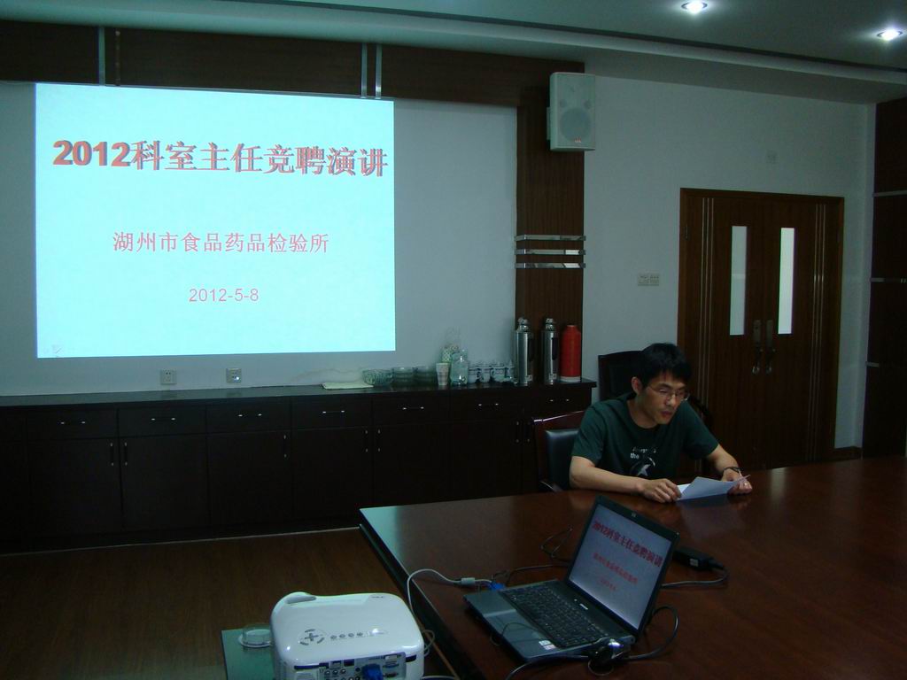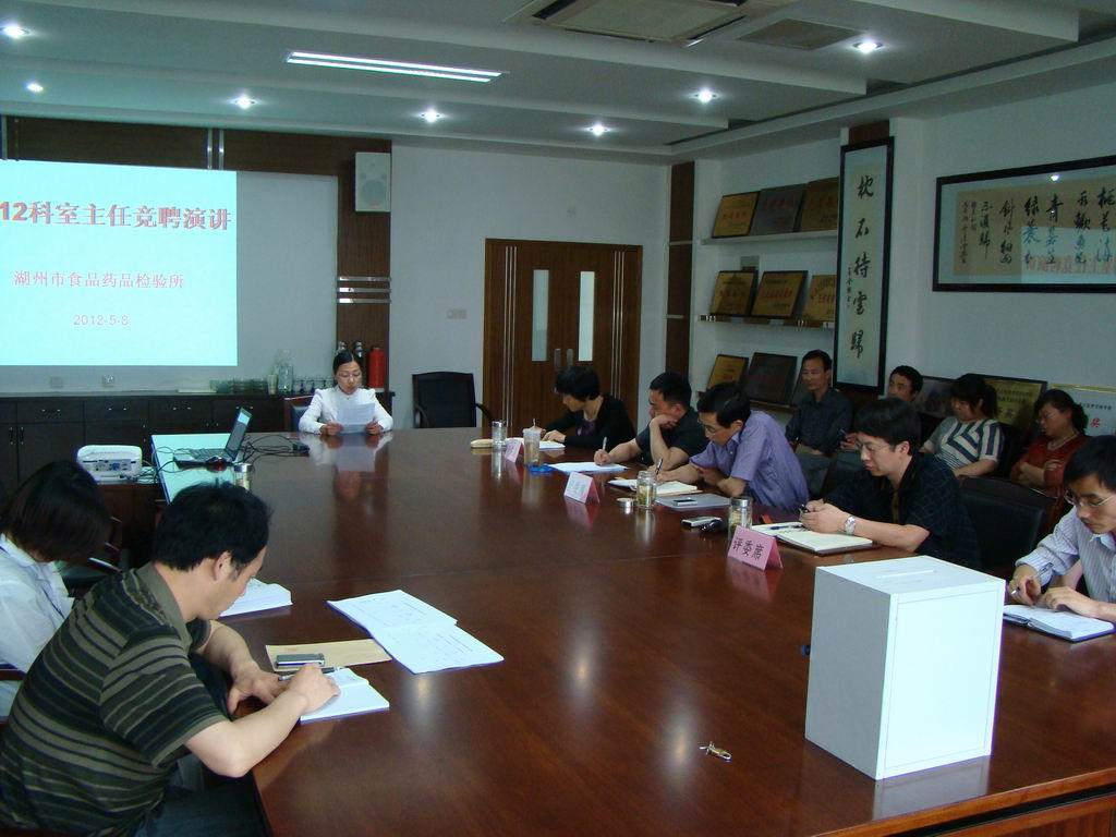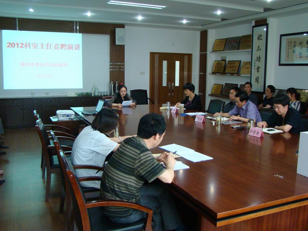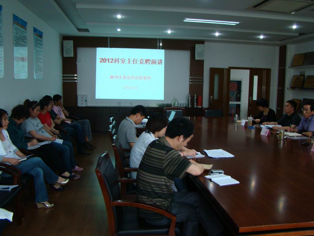 为了进一步加强实验室管理,完善“公开、平等、竞争、择优”的选人用人机制,结合国家、省、市有关人事制度改革要求,湖州市食品药品检验所领导班子决定开展2012年度科室主任竞聘。经过公布职位、竞聘申请、资格审查等前期准备工作,5月8日,湖州市食品药品检验所组织开展了科室主任竞聘演讲。