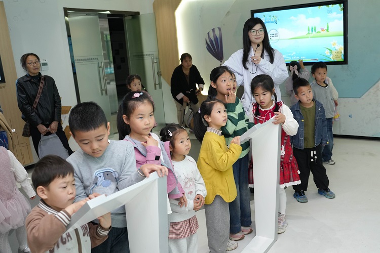 活动伊始,大家来到中草药植物园。工作人员化身 “科普小导游”,带着小朋友们认识芍药、艾叶、铁皮石斛等各种中草药,了解其药用价值,感受自然的神奇与魅力。随后大家好奇地走进食品药品科普宣教中心。色彩鲜艳的展板、可爱的卡通形象和生动的视频,瞬间吸引了他们的目光。工作人员用简单易懂的语言,向小朋友们介绍了动植物标本、食品中的微生物等知识,小朋友们积极互动提问,现场气氛热烈。最后一站是微生物实验室。在这里,工作人员指导大家亲手操作显微镜,观察微生物的奇妙世界,激发他们对科学探索的兴趣。