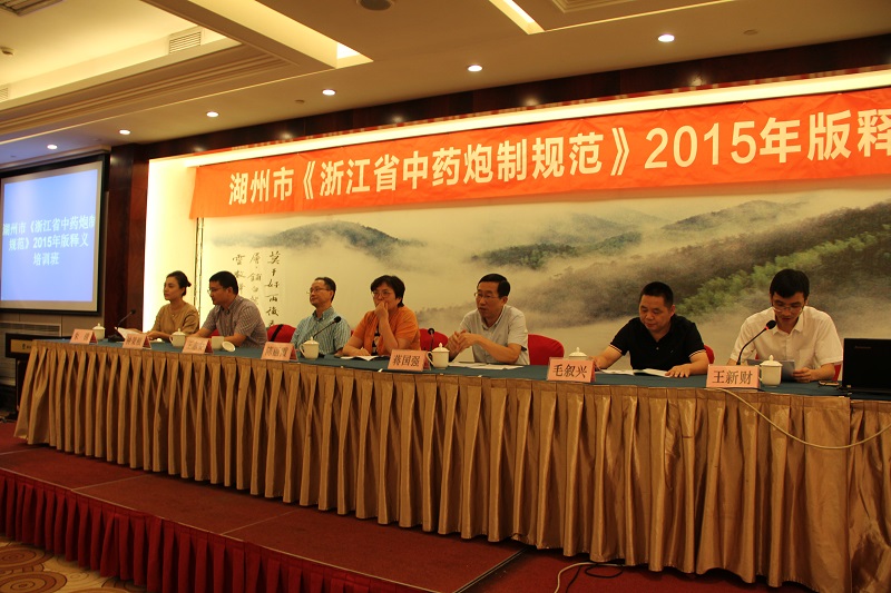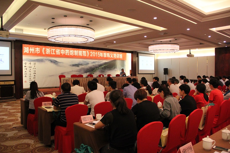 培训会上,省食药监局专家金樟照、省食药院主任中药师郭增喜、省中药研究所所长王志安、丽水市食药检院李水福及湖州市食药检院陈敏等相关中药专家分别就“中药饮片产业发展趋势和建议”、“《浙江省中药炮制规范》2015年版编制和执行相关内容介绍”、“《浙江省中药炮制规范》2015年版增修订内容介绍”、“浙江特色中药饮片简介”、“近几年全市中药饮片质量抽验等情况分析”等内容作了专题授课。授课内容丰富,实用性强,受到广大学员的一致好评。互动讨论环节,学员积极提问,各专家老师也现场解答了学员所提出的有关中药标准执行中的疑问。
