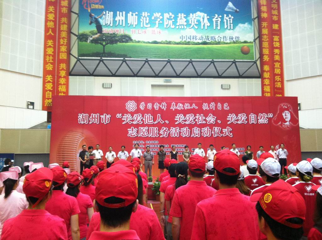 6月13日上午,湖州市食品药品检验所志愿者代表市总工会参加了在湖州师范学院举行的“关爱他人、关爱社会、关爱自然”志愿服务活动启动仪式。中央文明办、省文明办相关负责人,市领导胡菁菁、刘芸等出席启动仪式并为志愿服务队授旗。