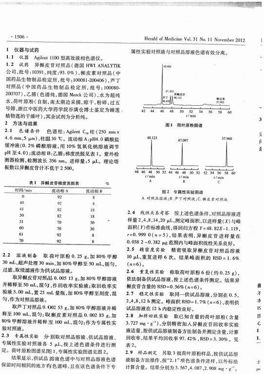 反相高效液相色谱法测定荷叶中异槲皮苷含量